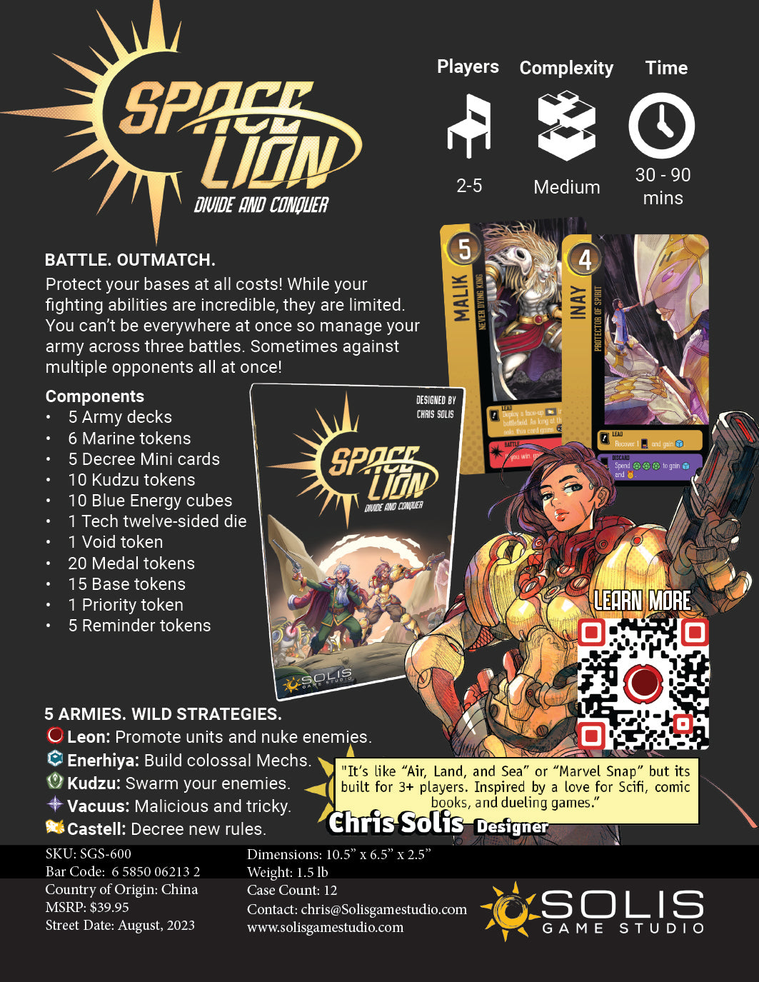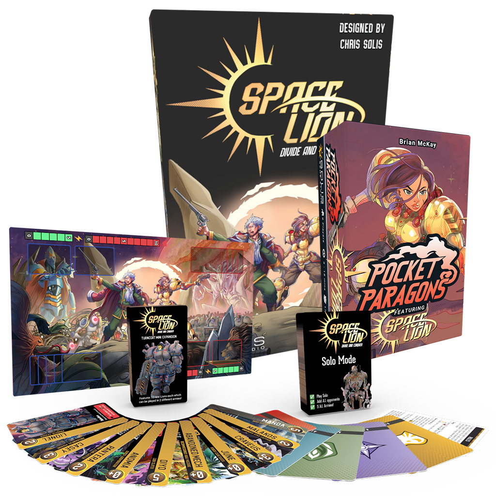 Dive into the world of Space Lion with this huge deal. Play the original Space Lion: Divide and Conquer game for 1-5 players and the intense sci-fi duels from the Pocket Paragons: Space Lion set!