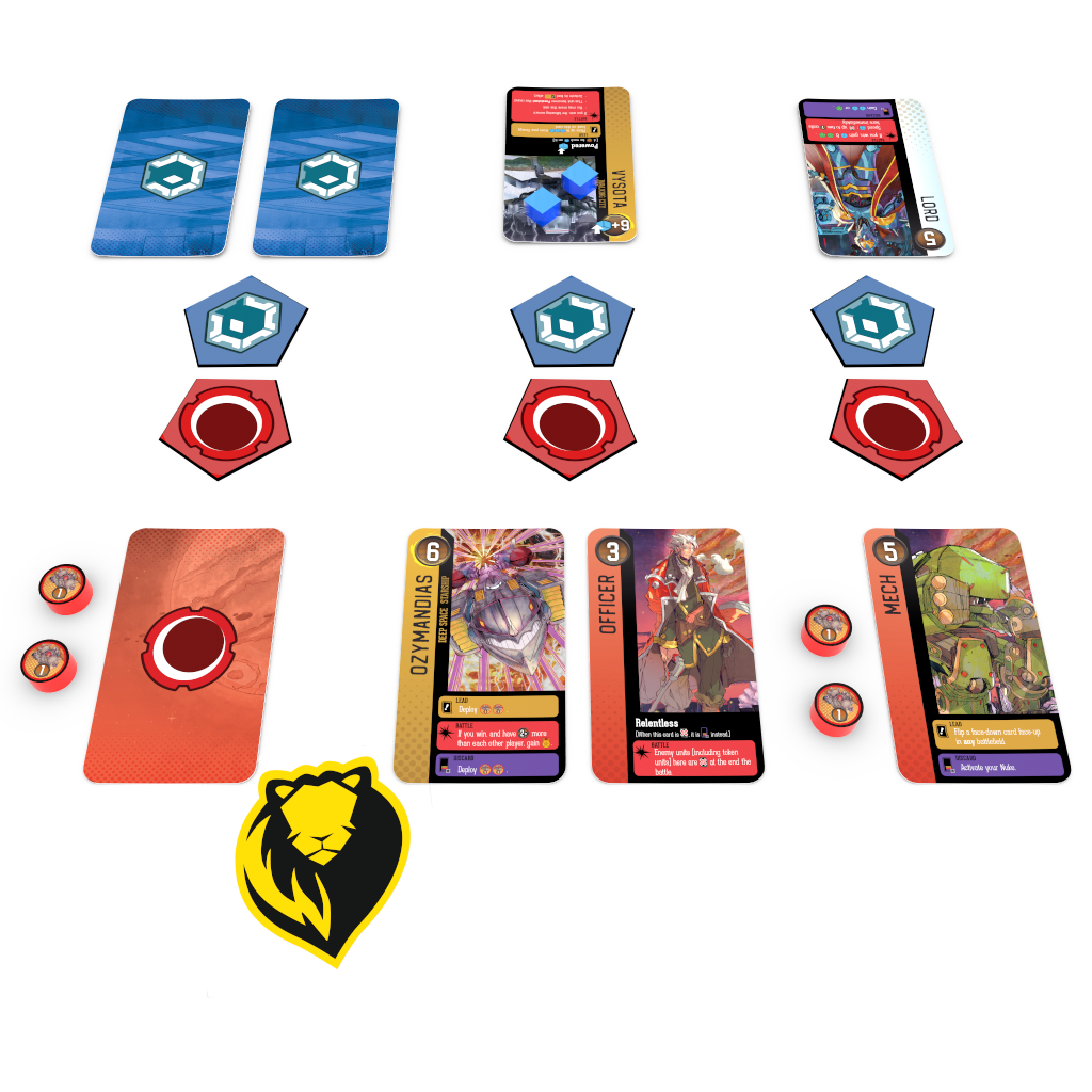 Space Lion: Divide and Conquer is a competitive battle card game for 2 to 5 players about leading your army against threating forces. While your fighting abilities are incredible, they are limited and you must protect all three of your bases at once!