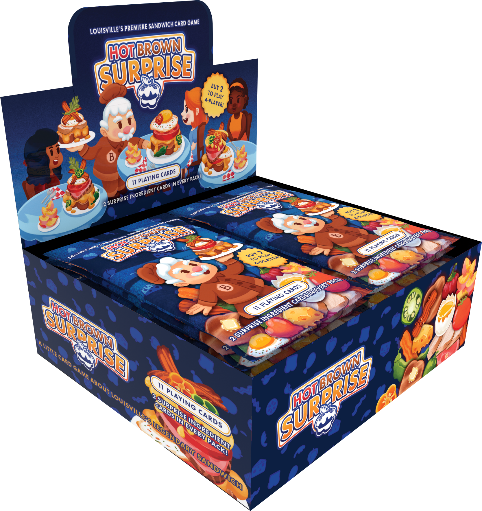This retail item is for a box of 24 packs of Hot Brown Surprise. Each pack contains 9 standard ingredient playing cards and 2 surprise ingredient cards.